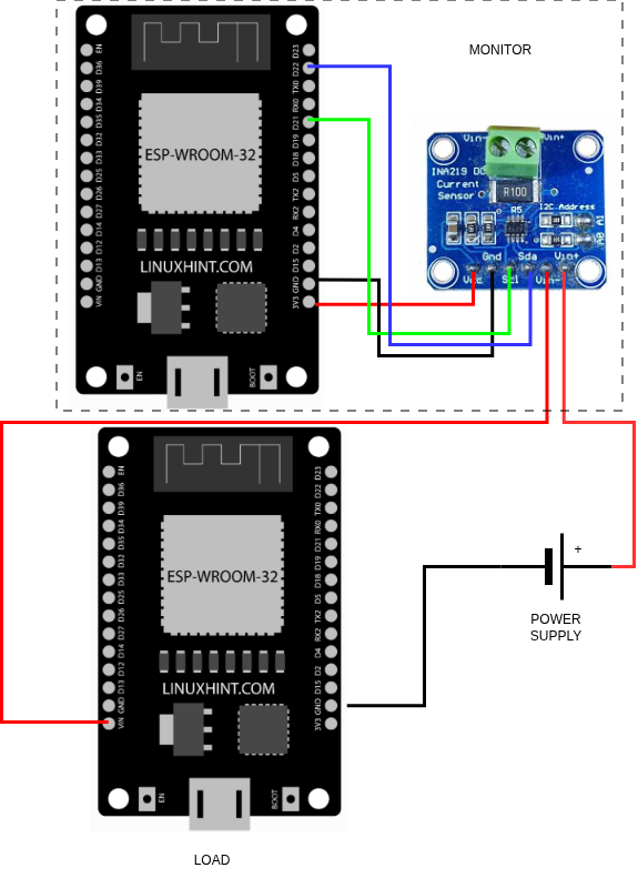 The INA219 is a high-side current shunt and power monitor with an \(I^2C\) interface. It is ideal for monitoring the power consumption of battery-powered projects.