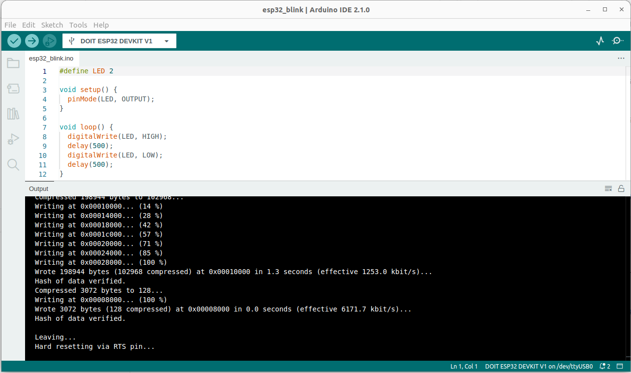 - Compile the code and on the code editor press F1 to download the firmware. It is a .bin file, let's name it sketch.bin file