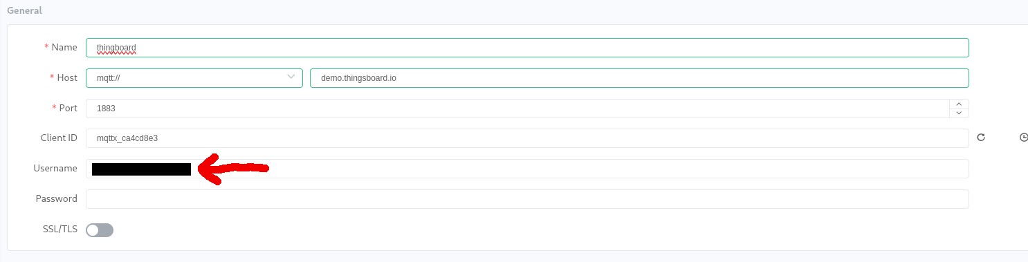 // ThingsBoard uses the ACCESS TOKEN as the MQTT USERNAME.