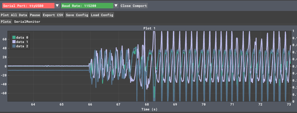 // Serial port — adjust to your port (Linux: /dev/ttyACM0, Windows: COM3)